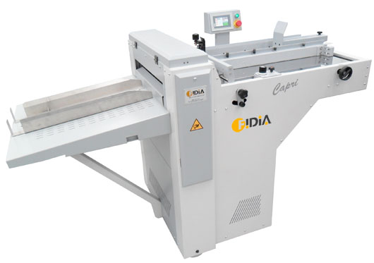 Automatic creasing machine for versatile print jobs — the Capri delivers precise multiple creases in one pass with an easy-to-use color touchscreen and vacuum feeder, ideal for brochures, gate folds and book covers with flaps on various paper weights, see more on our fidiagraf main site…